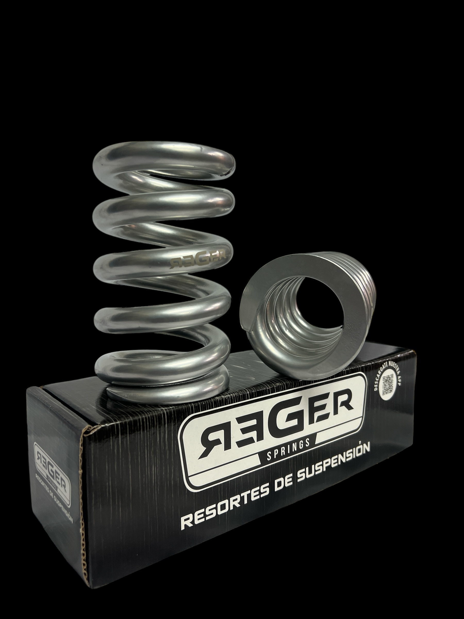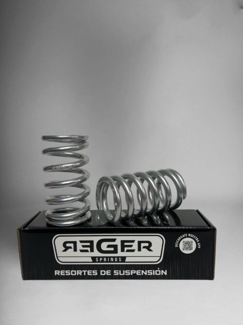 Lbs/inch: 2000 Kg/cm: 357 Ø Interior: 58mm / 2,25” Largo: 150mm / 6”” Peso por resorte: 1,7 kg Peso total en caja: 3,6 kg